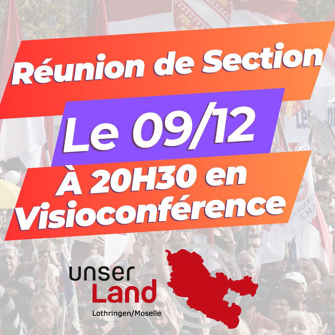 Réunion en visio de la section UL-Moselle mardi 9 décembre à 20h30, ouverte à tous / Die Videokonferenz der Sektion UL-Lothringen findet am Dienstag, dem 9. Dezember, um 20:30 Uhr statt. Offen für alle. 9 Dez. 2025 | Aktuelle Informationen